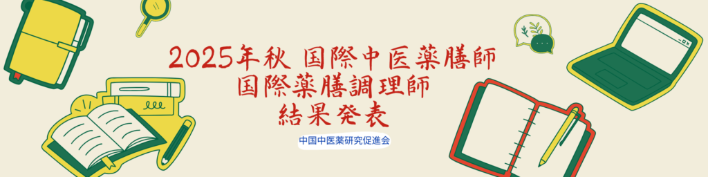 中国中医薬研究促進会より2025年10月18日・19日に行われました「国際中医薬膳師」及び「国際薬膳調理師」能力認定試験の結果についての連絡が届きましたので、下記に発表いたします。